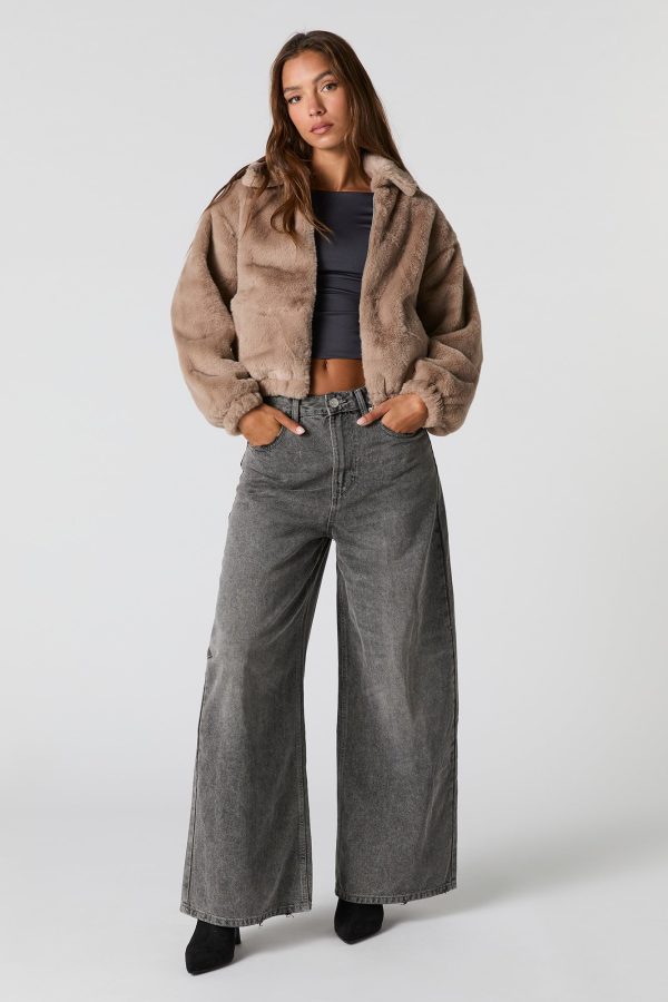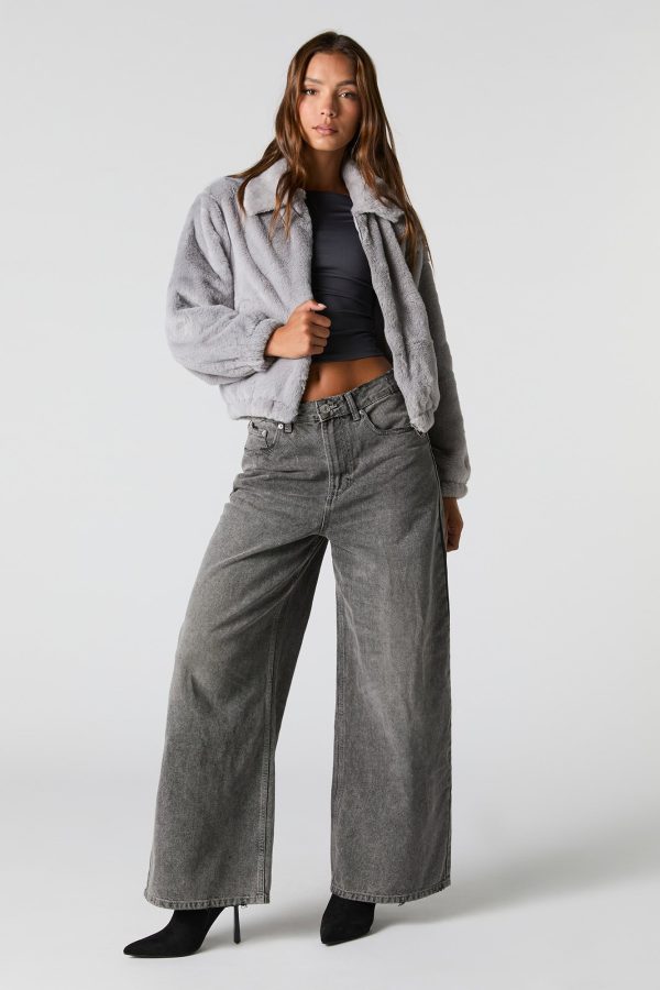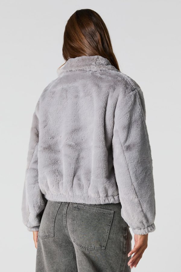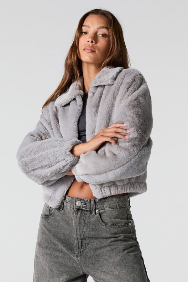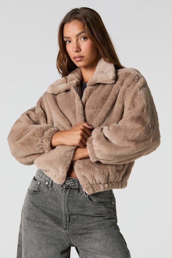 Plush Collared Bomber Jacket