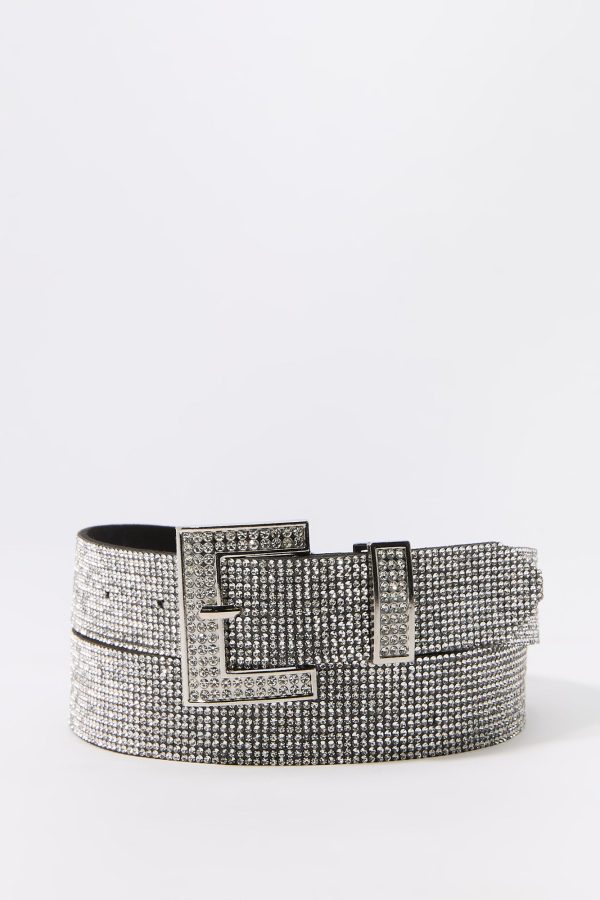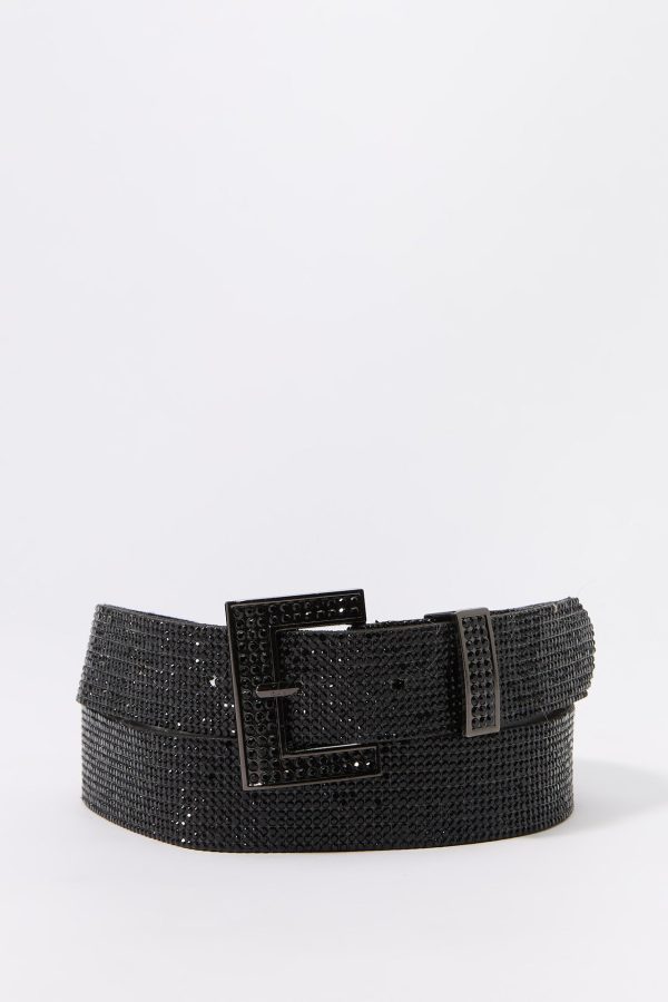 Shine bright with this must-have accessory. This belt features rhinestone embellishments and adjustable square buckle.
