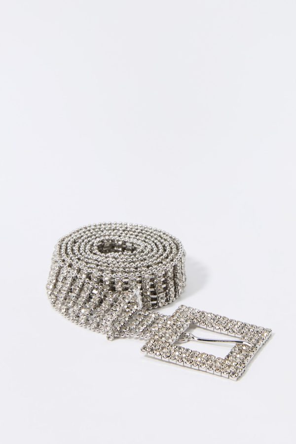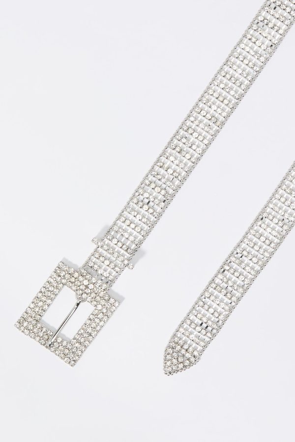 Add some sparkle to your new season fit with our rhinestone belt. This belt features rhinestone material and adjustable buckle.